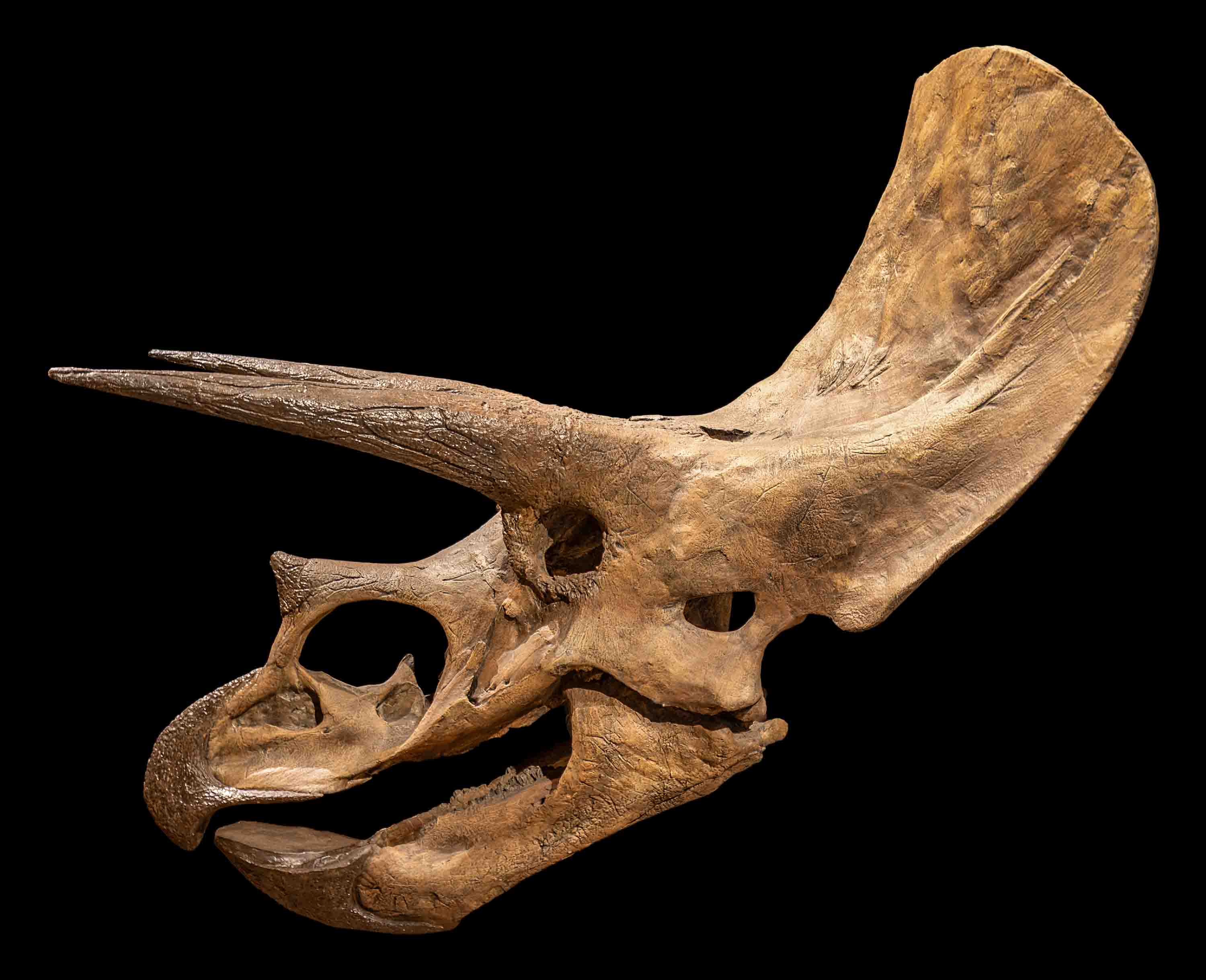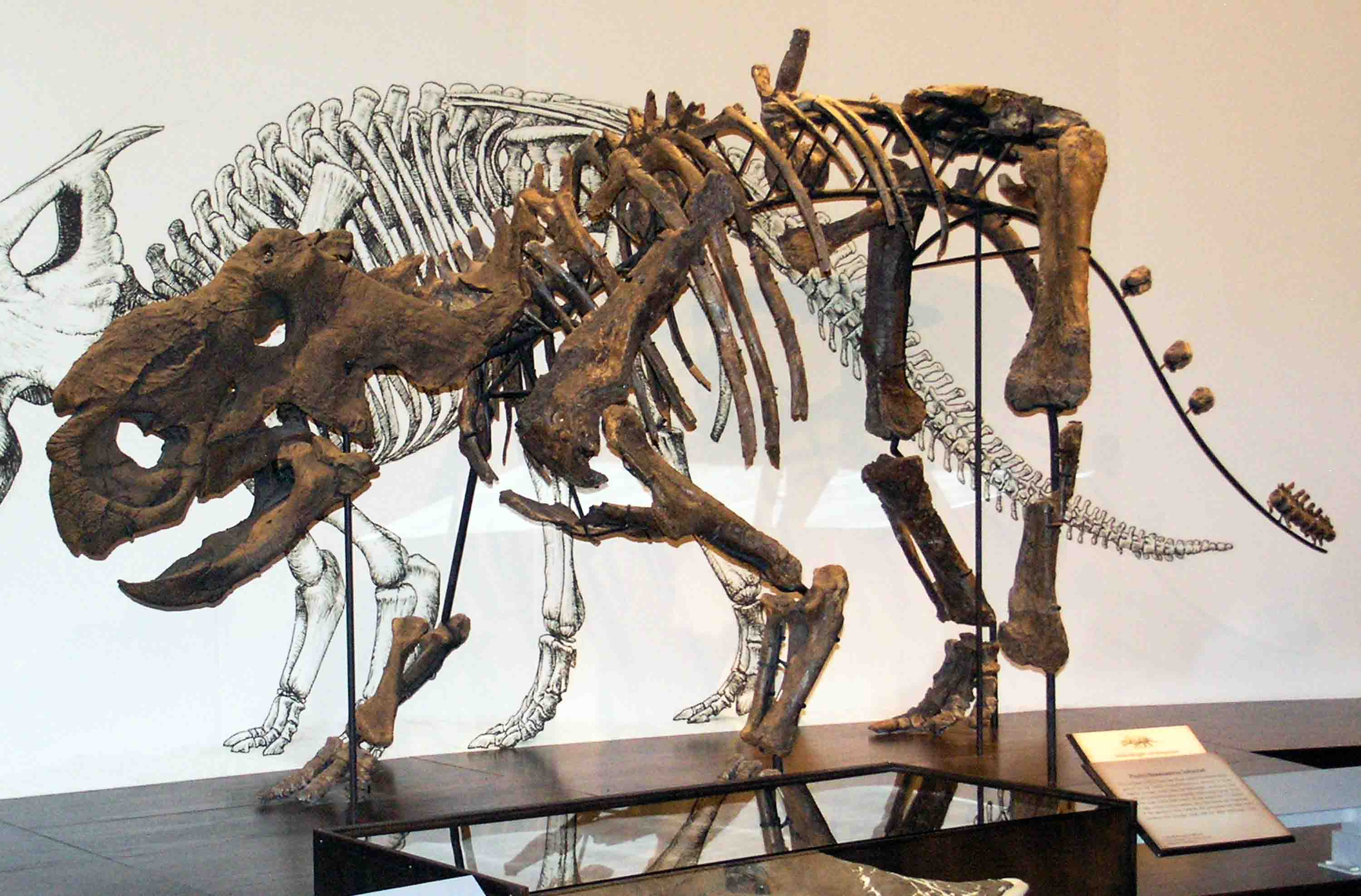 In the vast Dinosaur Hall, which houses more than 30 mounted dinosaur skeletons, I spot the Albertasaurus as well as Pachyrhinosaurus, a herbivorous species that features in episode five, ‘The Journey North’ of Walking with Dinosaurs. That particular Pachyrhinosaurus, along with many other fossils in the Royal Tyrrell Museum, was unearthed further northwest in Alberta, at a site called the Pipestone Creek Bonebed. It’s known for having one of the greatest concentrations of dinosaur fossils anywhere in the world—roughly 100 to 300 bones per square meter.