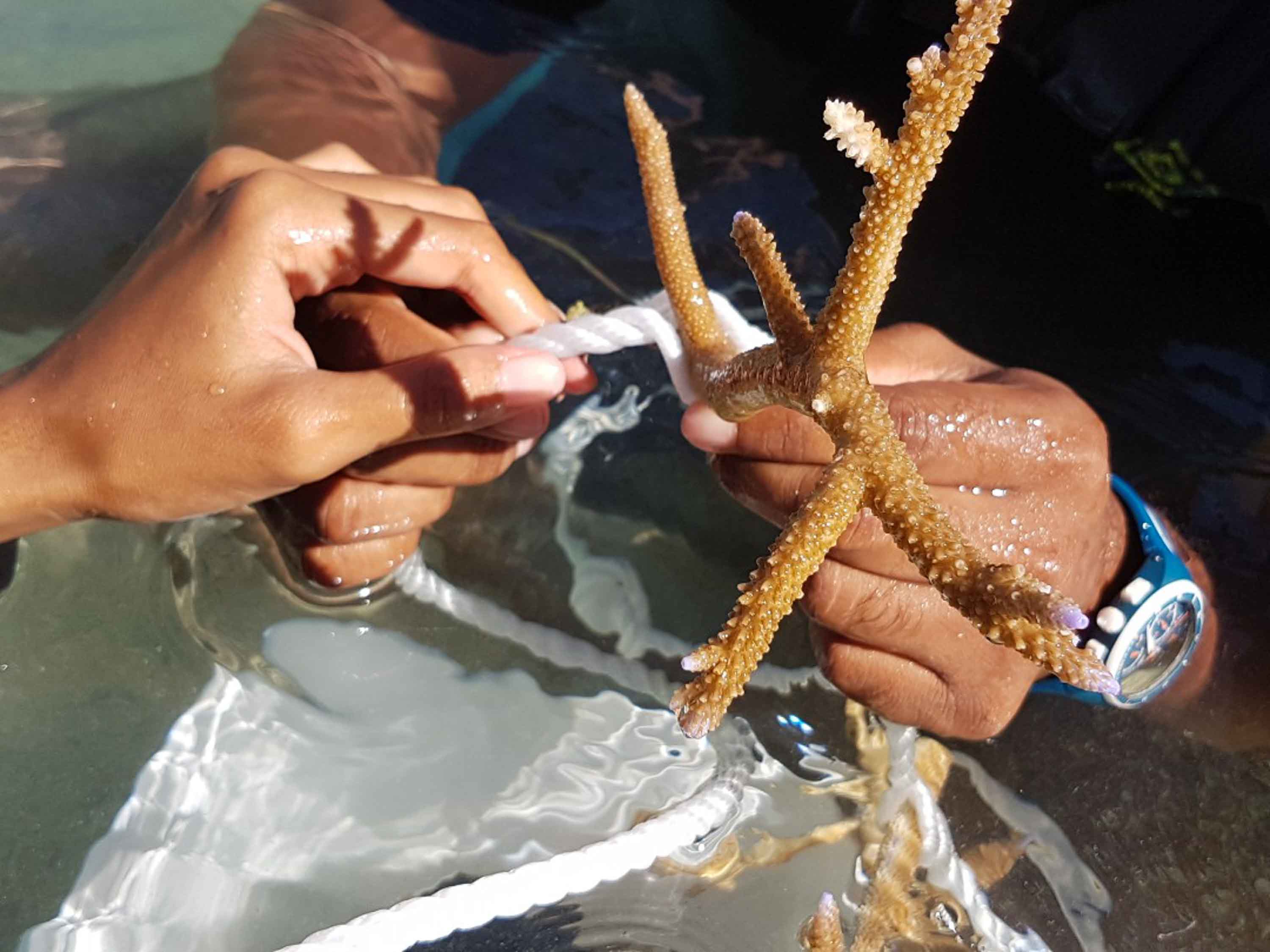 “We are very happy to see the coral thriving and the fish doing their homemaking so they are jumping from coral to coral, trying to make a home,” she says. “In another year, I wouldn’t expect to see the mesh structures which will be covered in corals and much more fish. It’s going to be a happy reef.”